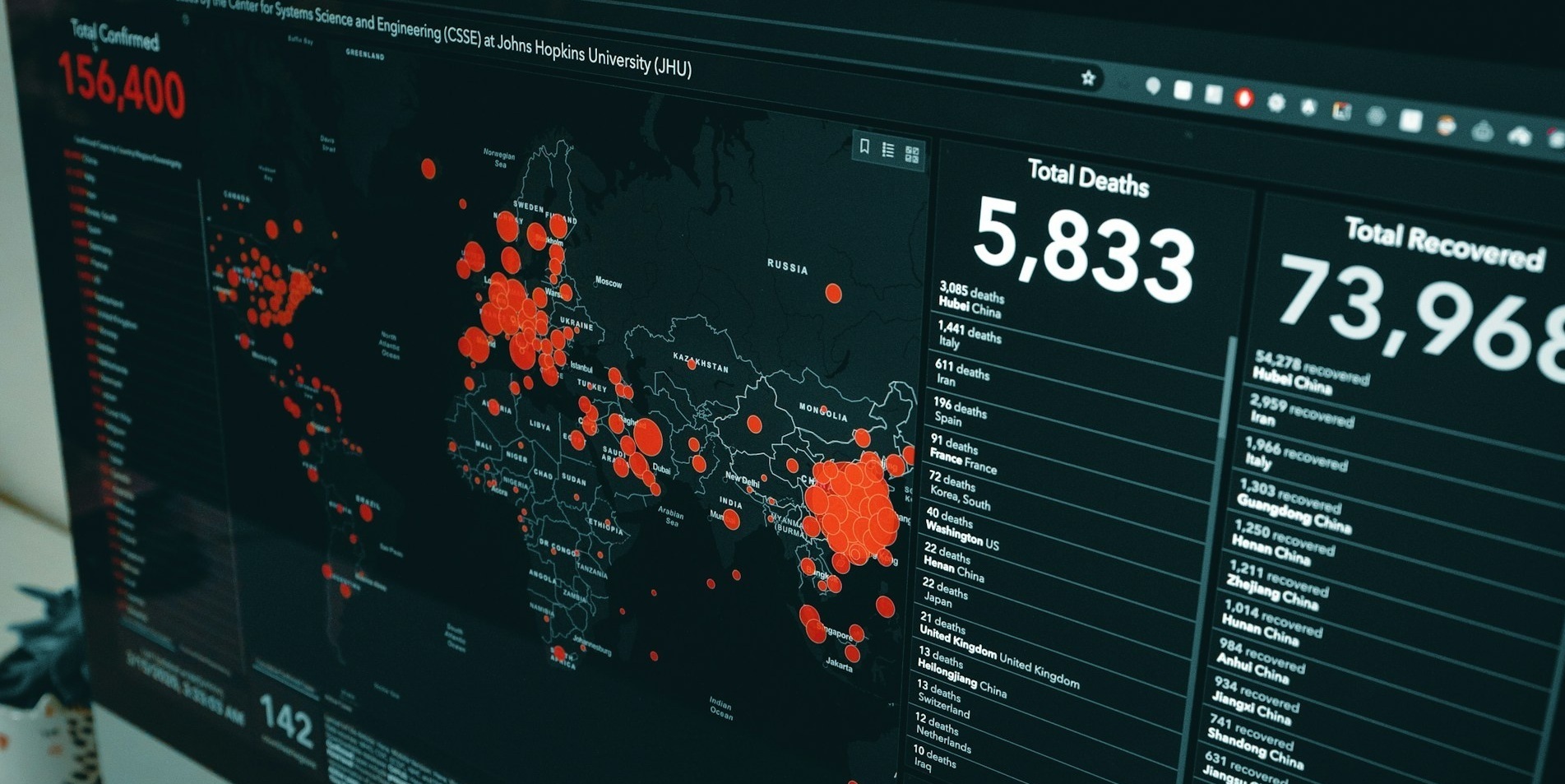 Dashboard for global COVID 19 data